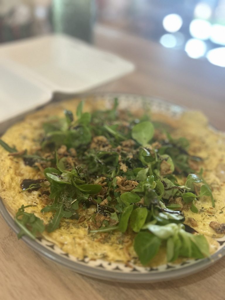 Omelette aux épices, accompagné d’une salade de mâche.